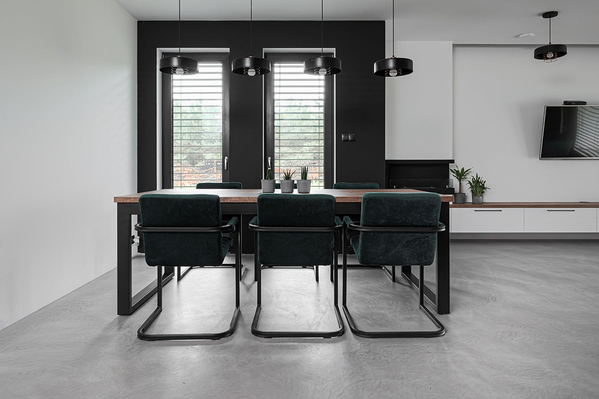 Here, in the heart of Żerków, the raw grey microcement on the floor evokes the cold forests of the north. Black, white and industrial details complete the picture, creating an interior that is not only stylish but also full of deep, natural connotations.