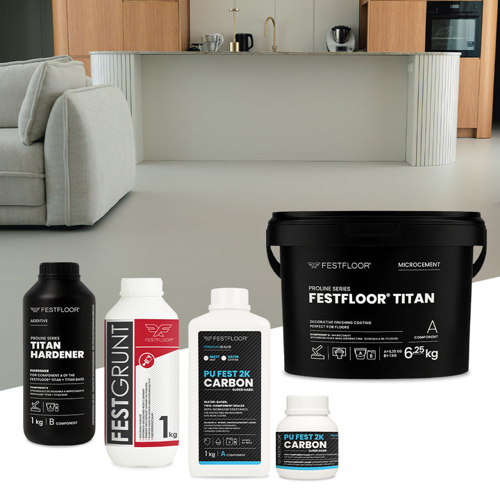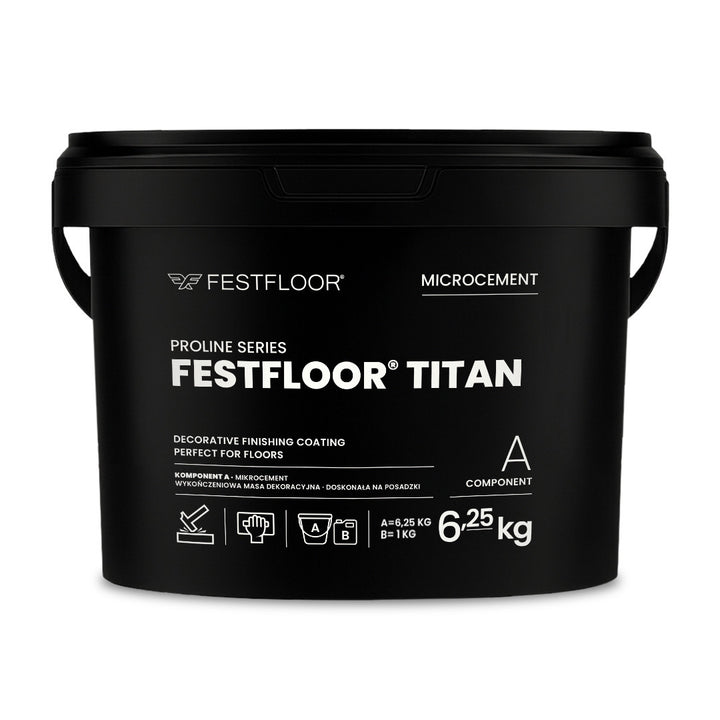 Festfloor Titan je betonová stěrka se zvýšenou tvrdostí, určená pro náročné povrchy – zejména podlahy a schody – kde je důležitá odolnost, výdrž a trvanlivost povrchové úpravy. Systém je založen na epoxidové pryskyřici, což jej odlišuje od ostatních betonových stěrek dostupných na trhu. Tato sada betonové stěrky je určena pro ty, kteří chtějí provést betonovou stěrku na podlahu sami nebo s pomocí odborníka, bez nutnosti shánět všechny komponenty zvlášť.