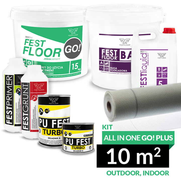 FESTFloor BAZA s tkaninou: 20 kg FESTFLOOR BAZA betonová stěrka (15 kg FESTPowder BAZA + 5 kg FESTLiquid) + 10 m2 sklolaminátové tkaniny